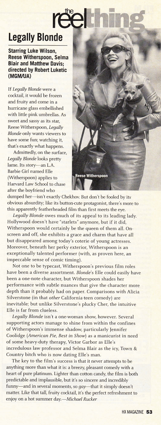 Legally Blonde Posted on April 16, 2013 by An Ordinary Guy “As sweet and sassy as its star, Legally Blonde only wants viewers to have some fun; watching it, that’s exactly what happens…” Click to view clip Share this: Share on X (Opens in new window) X Share on Facebook (Opens in new window) Facebook Like Loading... Related
