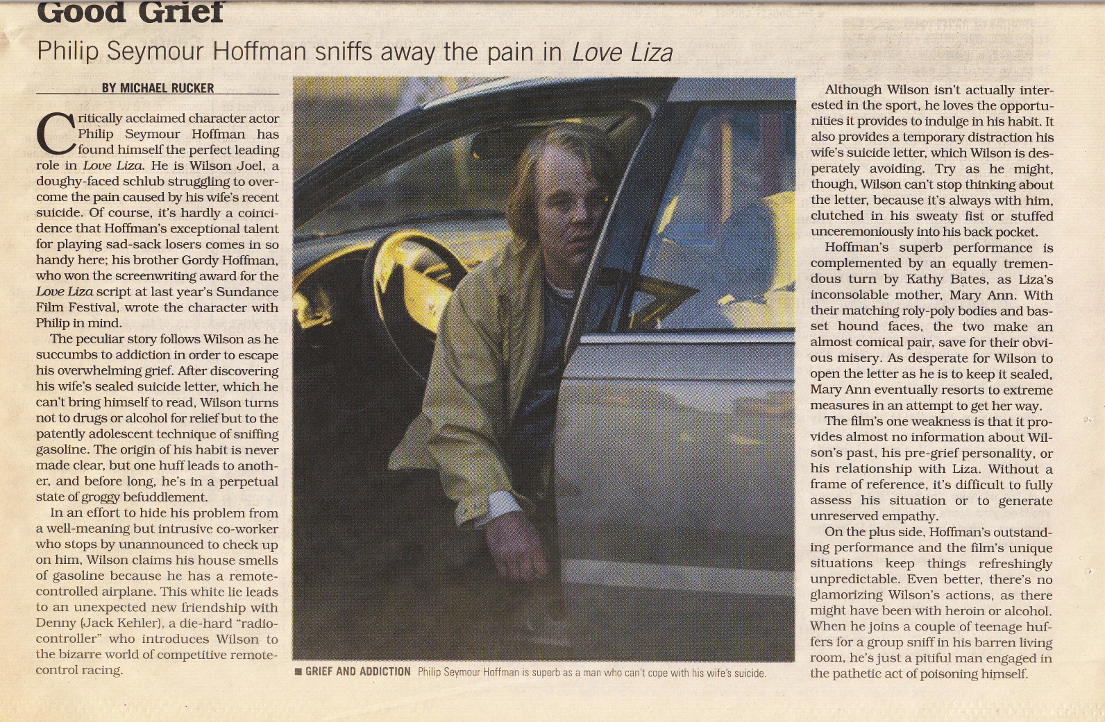 Philip Seymour Hoffman sniffs away the pain in Love Liza