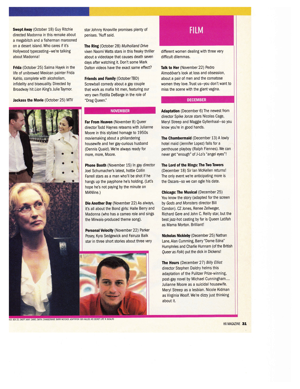 HX Says: Julianne Moore as a suicidal housewife. Meryl Streep as a lesbian. Nicole Kidman as Virginia Woolf. We’re dizzy just thinking about it.